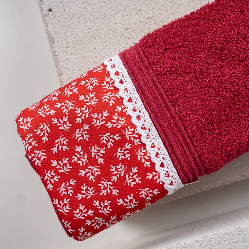 Δύο υπέροχες πετσέτες χεριών(30Χ50), σε αποχρώσεις μπορντό και κυπαρισσί, με υφασμάτινη φάσα και λεπτομέρεια δαντέλας, συνδυάζονται αρμονικά με ένα χειροποίητο κεράκι χιονονιφάδα από την OKU Creations, με άρωμα που ξυπνά τις πιο γλυκές χριστουγεννιάτικες αναμνήσεις.