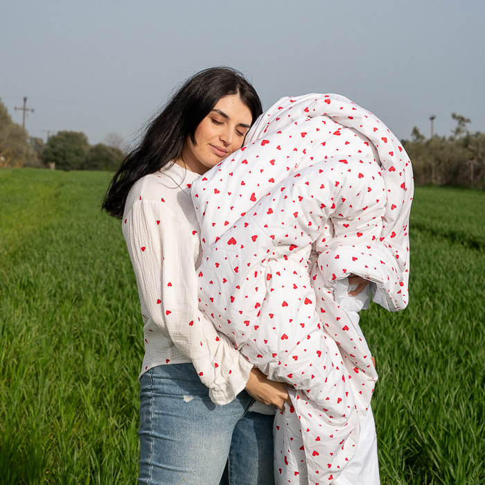 Love is in the…bed! Το σχέδιο In Love έχει έρθει για τους ερωτευμένους της παρέας. Ένα ξεχωριστό δώρο για τον Βαλεντίνο σου για να γεμίσει το υπνοδωμάτιο σας με καρδούλες! Ολοκλήρωσε το σετ σου με την απαλή και βελούδινη καρδιά μαξιλαράκι.